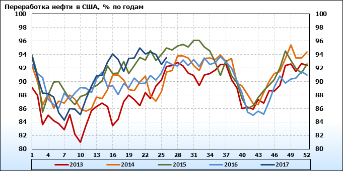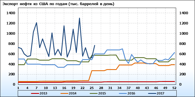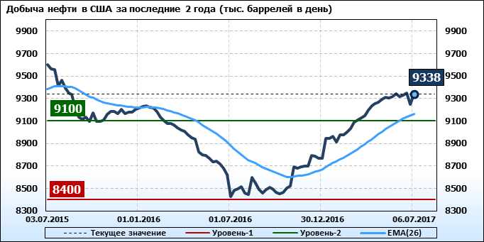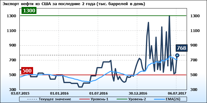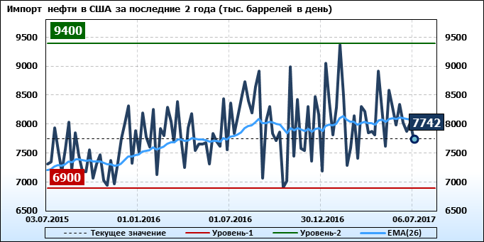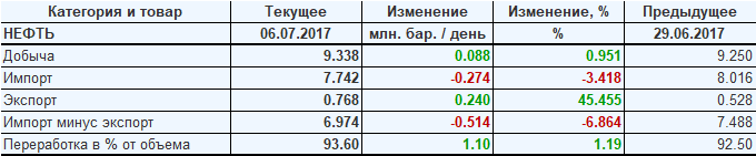 Добыча, импорт, экспорт нефти. США. EIA (U.S. Energy Information Administration). Данные на 06.07.2017