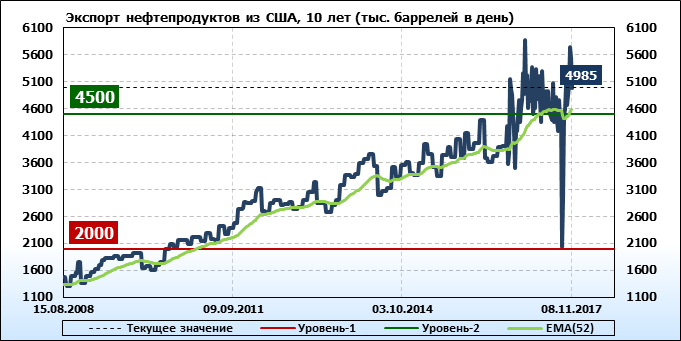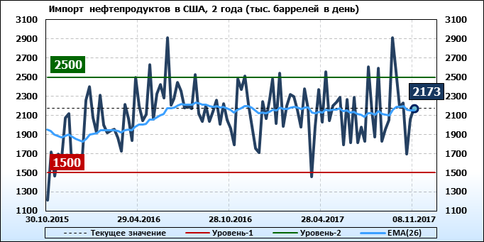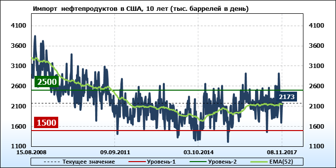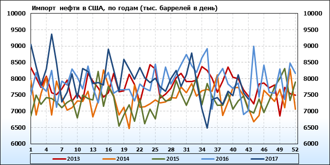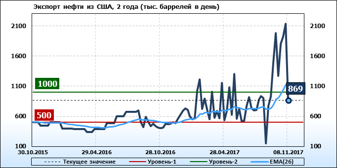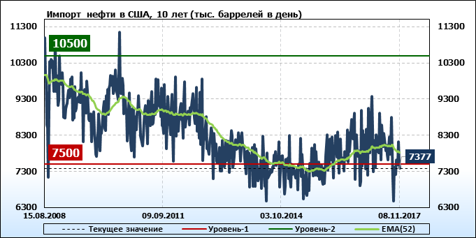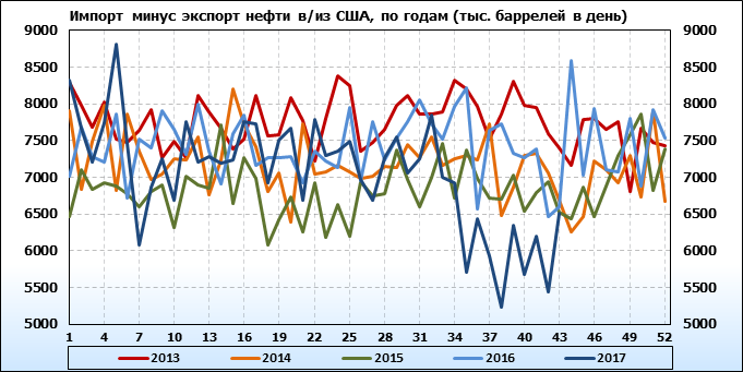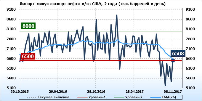 Добыча, импорт, экспорт нефти. США. EIA (U.S. Energy Information Administration). Данные на 08.11.2017