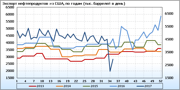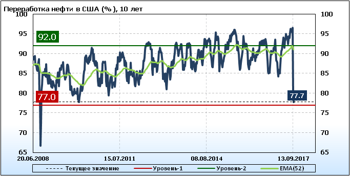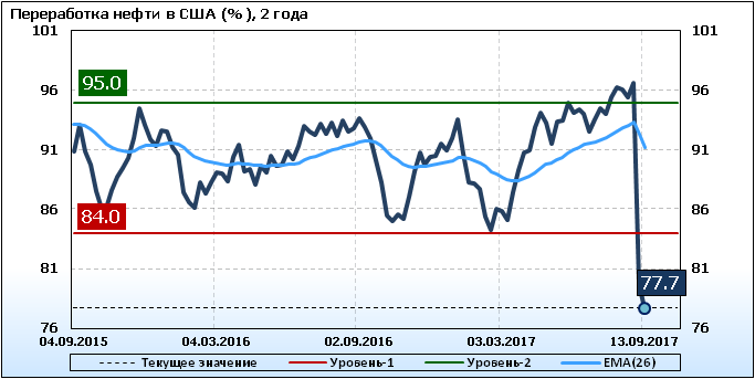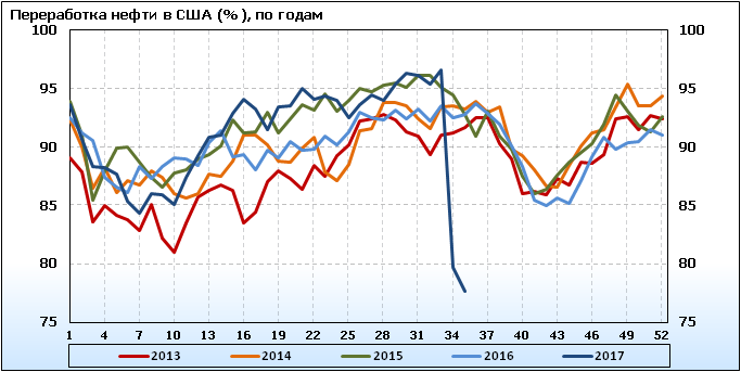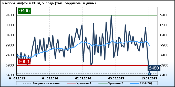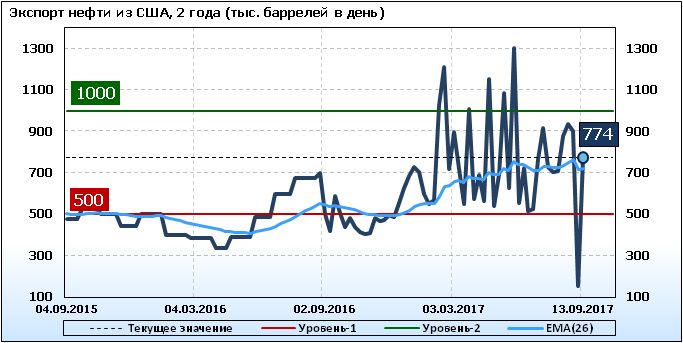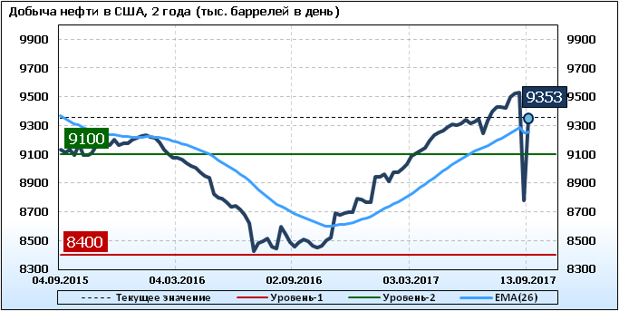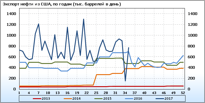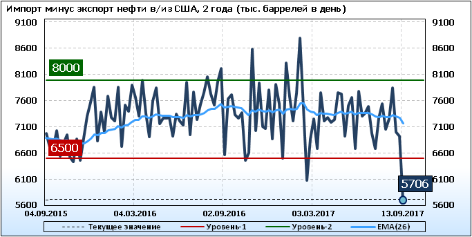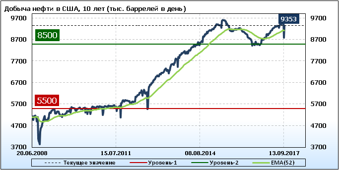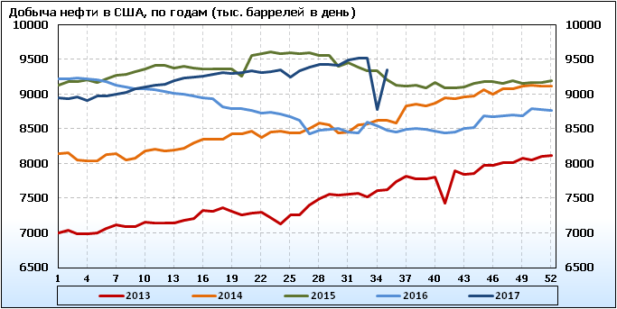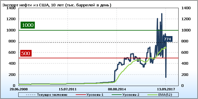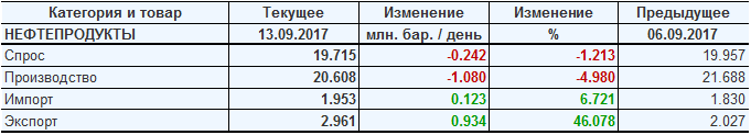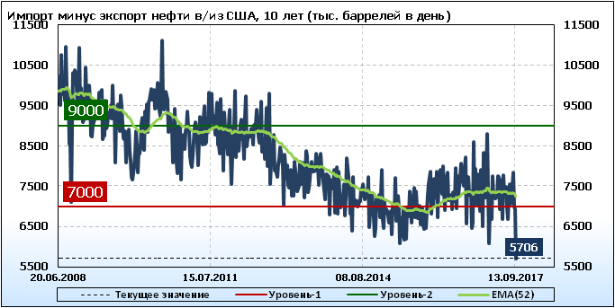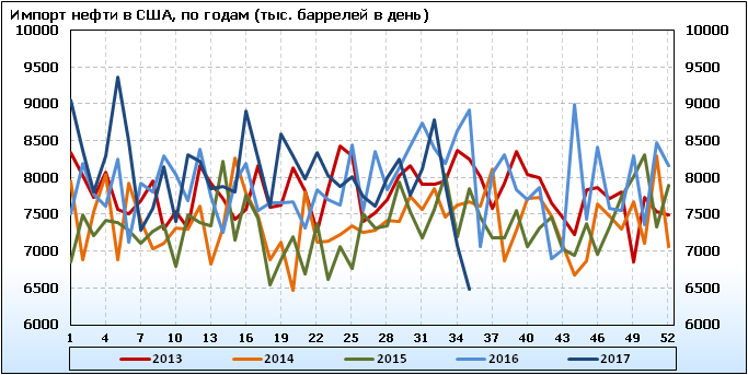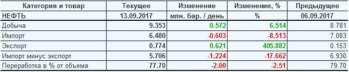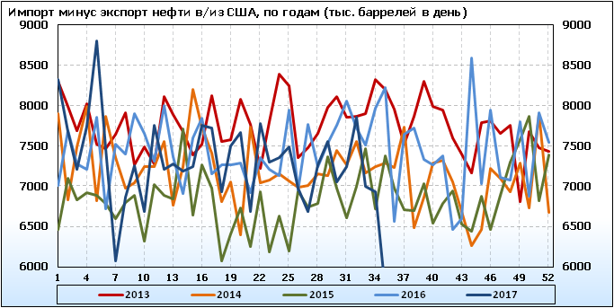 Добыча, импорт, экспорт нефти. США. EIA (U.S. Energy Information Administration). Данные на 13.09.2017