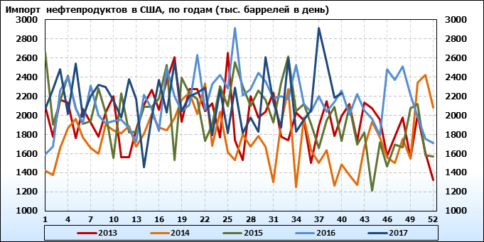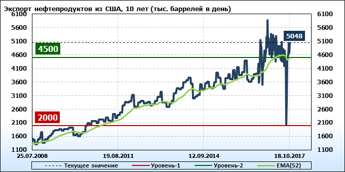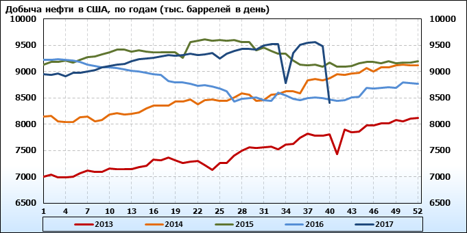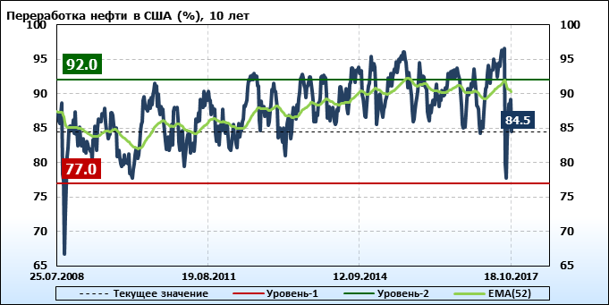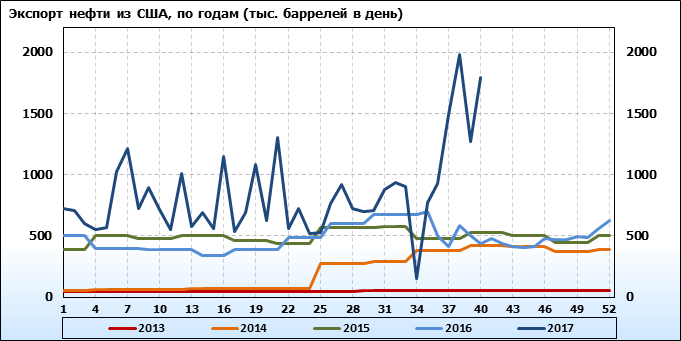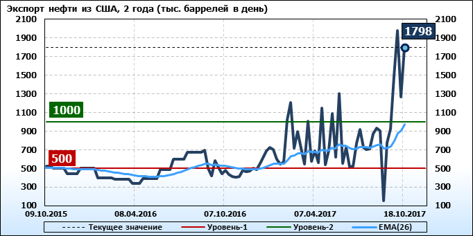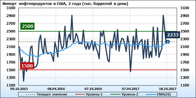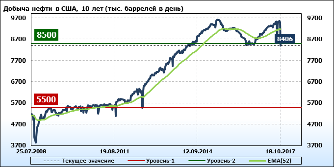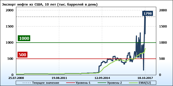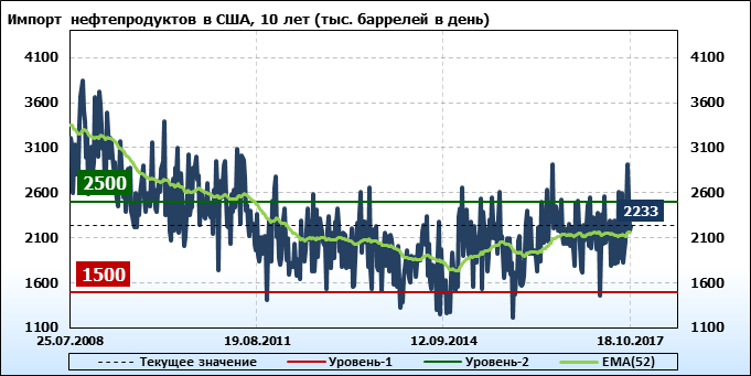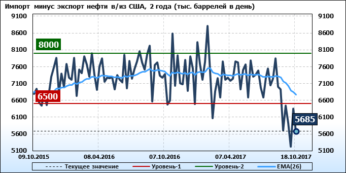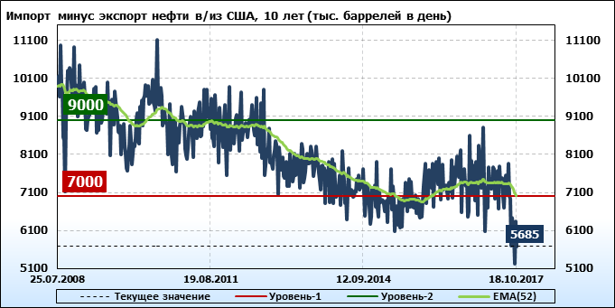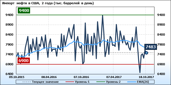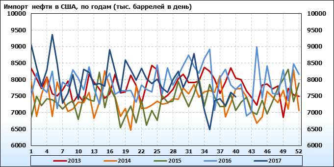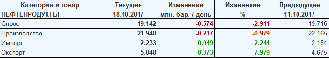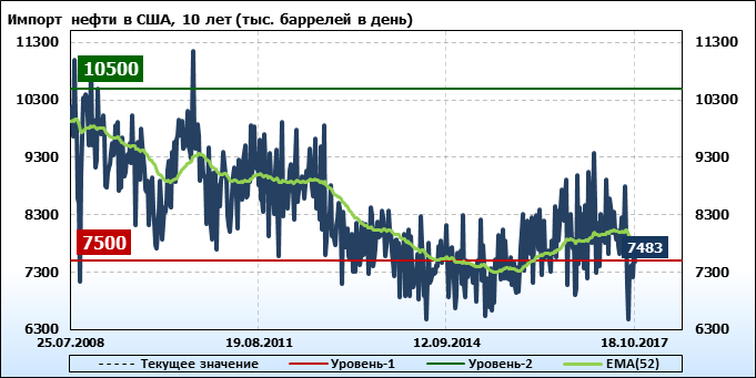 Добыча, импорт, экспорт нефти. США. EIA (U.S. Energy Information Administration). Данные на 18.10.2017