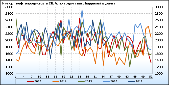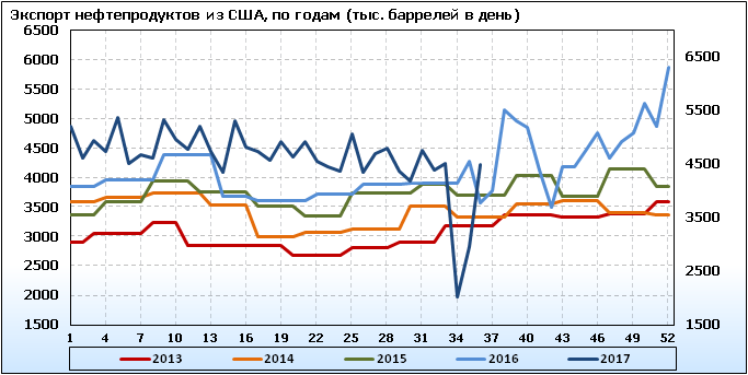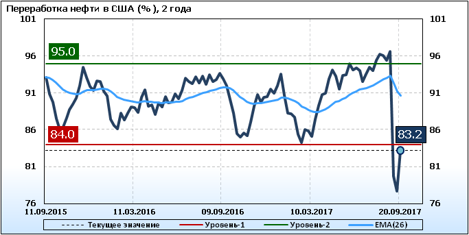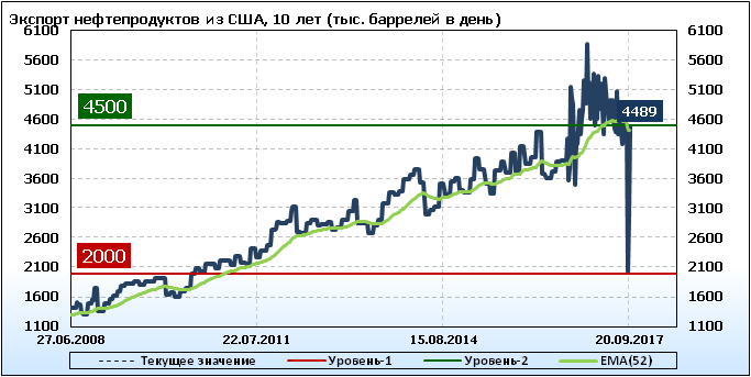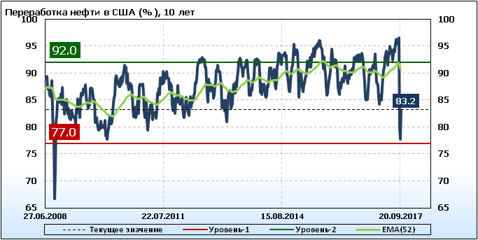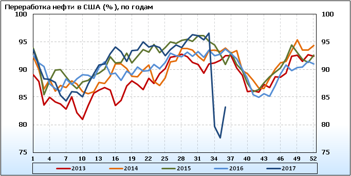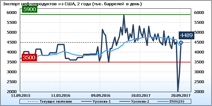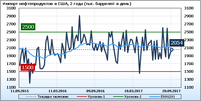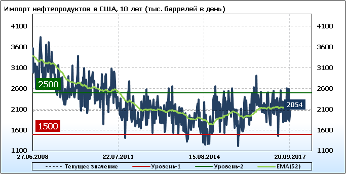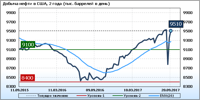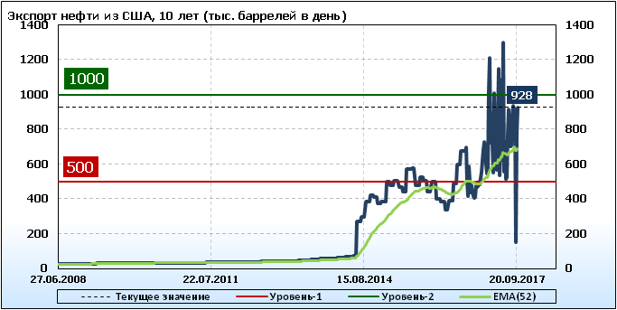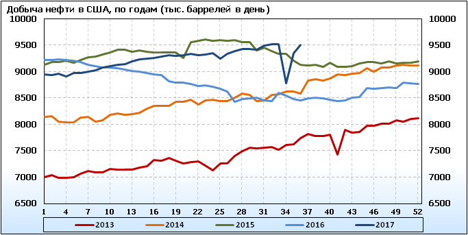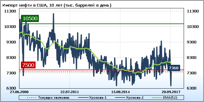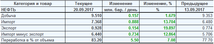 Добыча, импорт, экспорт нефти. США. EIA (U.S. Energy Information Administration). Данные на 20.09.2017