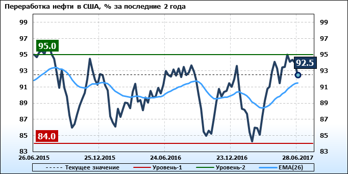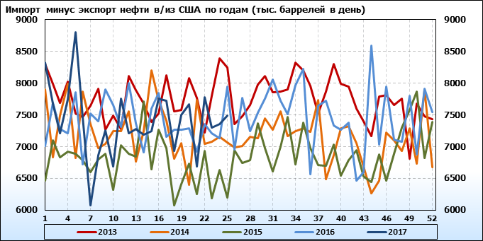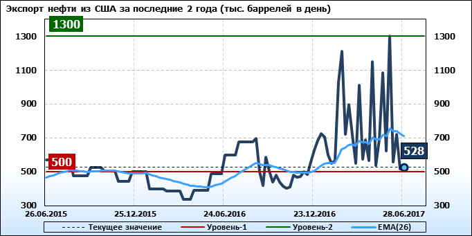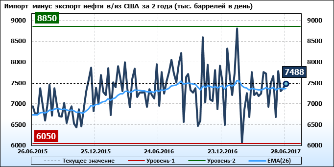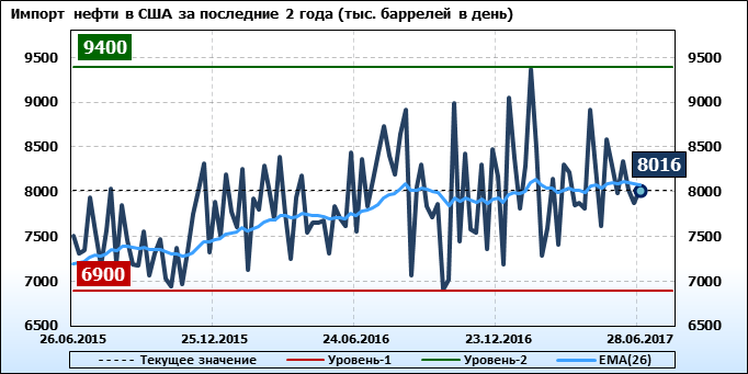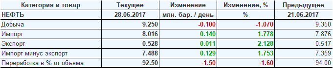 Добыча, импорт, экспорт нефти. США. EIA (U.S. Energy Information Administration). Данные на 28.06.2017