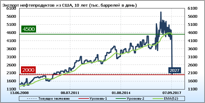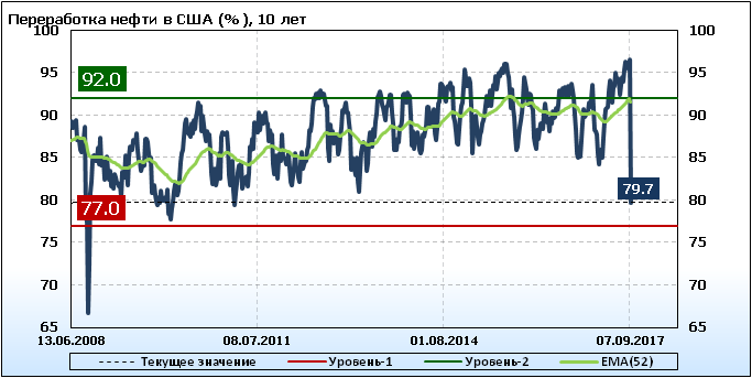 Добыча, импорт, экспорт нефти. США. EIA (U.S. Energy Information Administration). Данные на 7.09.2017