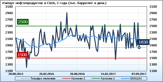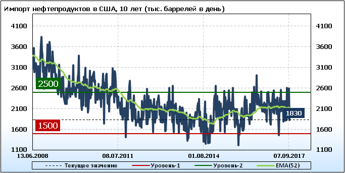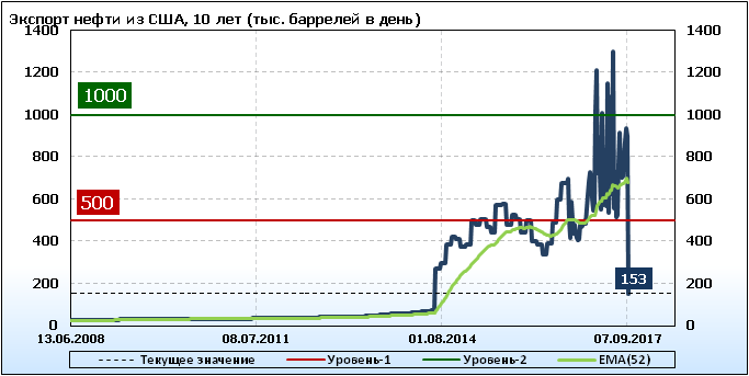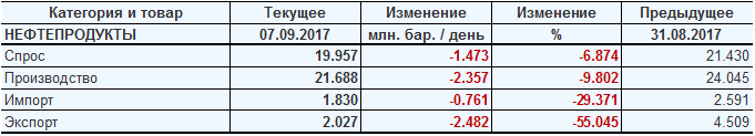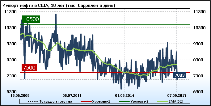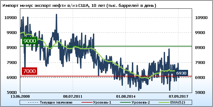 Добыча, импорт, экспорт нефти. США. EIA (U.S. Energy Information Administration). Данные на 7.09.2017