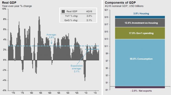 Это третий по величине исторический показатель роста экономики с 1900 года. Рост экономики ускорился в третьей четверти 2016 года, но в последней четверти вновь замедлился.
