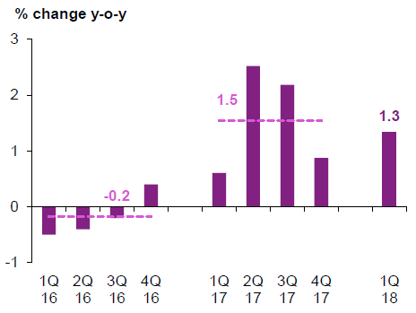Прогноз роста ВВП остался без изменений — 1.8% для 2018 и 2019 годов.
