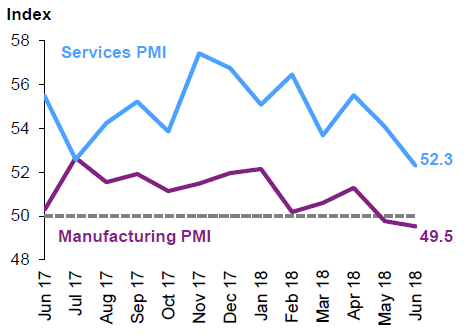 Индекс IHS Markit Business Activity в июне составил 52.3, а в мае — 54.1.