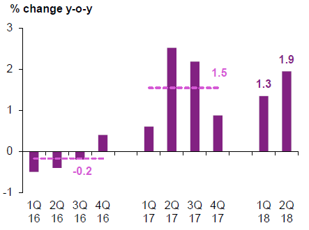 Во втором квартале 2018 года рост показателя потребления домашних хозяйств составил 2.6%, а в первом квартале — 2.8%.