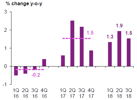 Рост ВВП в 2018 году составил 1.6%. В 2019 году прогнозируется аналогичное значение роста экономики — 1.6%.