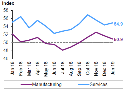 В декабре индекс составил 51.7, но в январе снизился до 50.9.