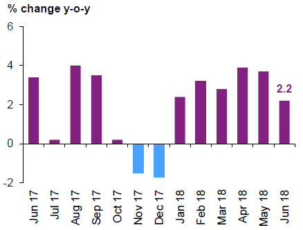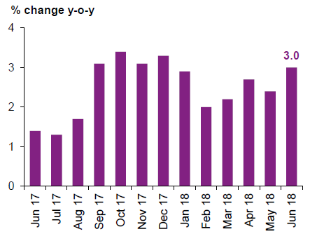 В июне объемы розничных продаж продолжили расти уже четырнадцатый месяц подряд. Рост показателя по сравнению с прошлым годом в июне составил 3.0%, а в мае — 2.4%.