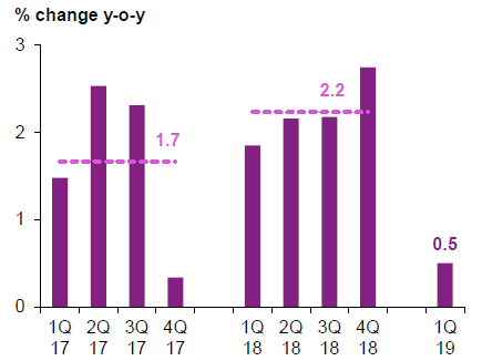 Показатель роста ВВП в первой четверти 2019 года оказался ниже, чем прогнозировало министерство экономического развития — 0.8%.