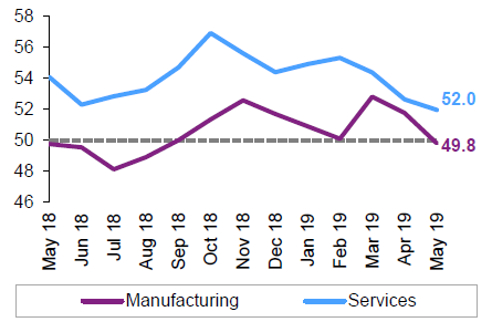 В мае индекс IHS Markit Manufacturing PMI составил 49.8, а в апреле — 51.8.