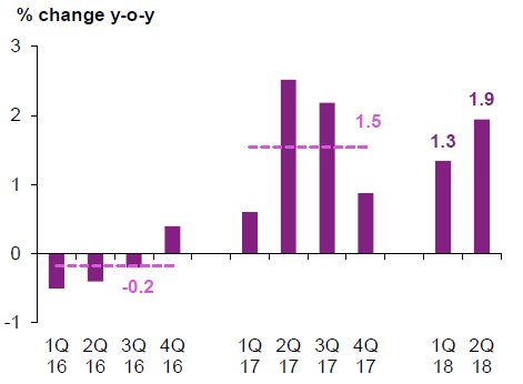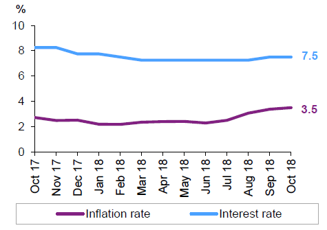 Активное сальдо торгового баланса в России в августе возросло до $15.8 млрд. Годом ранее данный показатель составил $6.7 млрд. Уровень экспорта возрос почти на 29% по сравнению с прошлым годом, в то время как импорт сократился на 3.5%. Темпы роста ВВП во втором квартале 2018 года были пересмотрены в сторону увеличения до 1.9%. Ранее указывалась цифра 1.8%. В первом квартале 2018 года рост экономики составил 1.3%. Обесценивание рубля продолжалось на протяжении восьми месяцев до октября. В октябре рубль впервые подорожал на 2.7%, однако в сентябре вновь подешевел на 2.4%.
