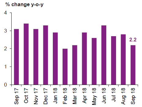 Розничные цены по состоянию на сентябрь росли уже на протяжении восемнадцати месяцев подряд. Темпы роста цен в сентябре составили 2.2%, а в августе — 2.8%.