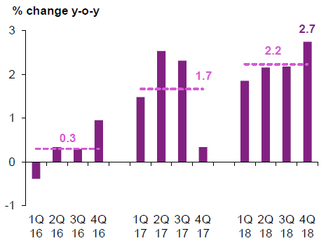 Уровень экспорта в четвертом квартале 2018 года на 2.6% превысил уровень предшествующего года.