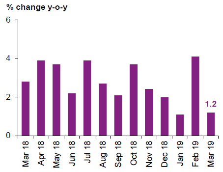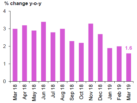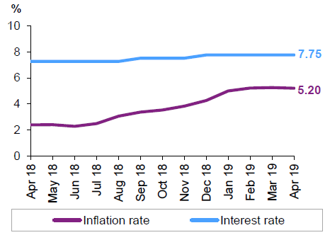 В апреле рост инфляции замедлился впервые за девять месяцев. Инфляция в марте 2019 года на 5.3% превысила уровень 2018 года (это был самый высокий показатель инфляции с декабря 2016 года), а в апреле — на 5.2%.
