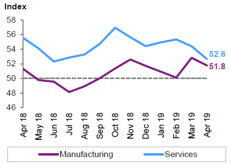 В апреле индекс IHS Markit Services Business Activity составил 52.6, а в марте — 54.4.