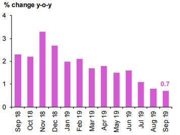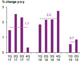 Продолжающееся замедление в производственном секторе, сопровождающееся слабым ростом розничных продаж и сокращением новых заказов на экспорт, бросает тень на перспективы роста в 2019 году, особенно после регистрации роста ВВП всего на 0.7% в годовом исчислении в первой половине 2019 года.