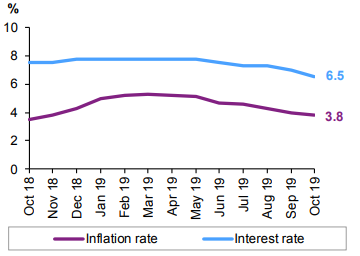 В октябре Центральный банк снизил недельную ставку РЕПО с сентябрьских 7.0% до 6.5%. Это уже третье по счету снижение процентной ставки с июня 2019 года.