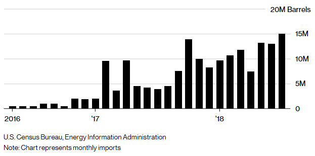 До переполоха из-за таможенных тарифов экспорт сырой нефти США в Китай вырос до 15 млн. баррелей в июне. Согласно данным Бюро переписи населения США и агентства Energy Information Administration, этот показатель является рекордным с момента начала систематизации данных в 1996 году. Благодаря этому Китай стал крупнейшим покупателем американской нефти.