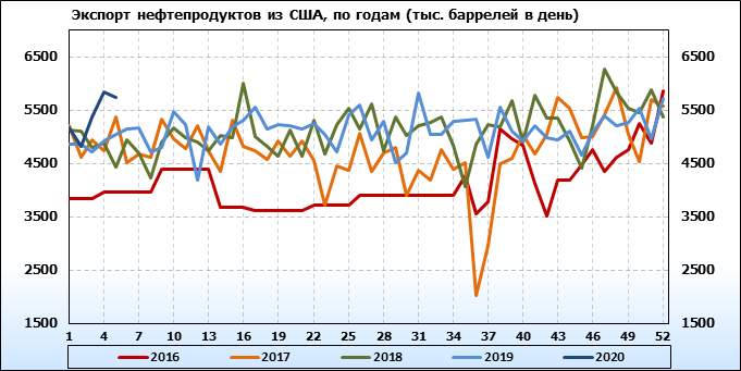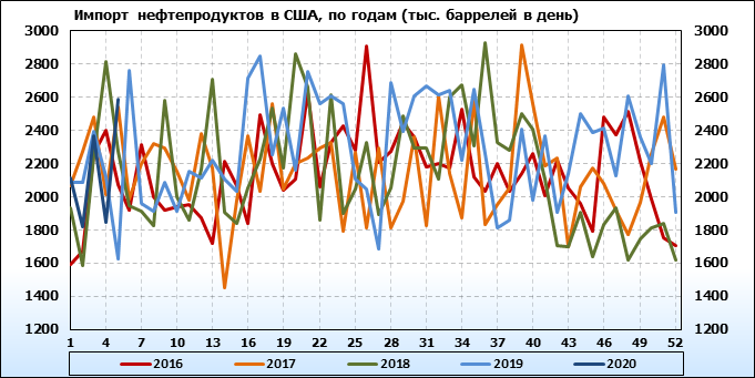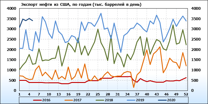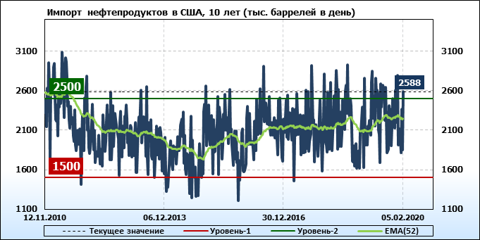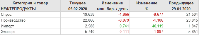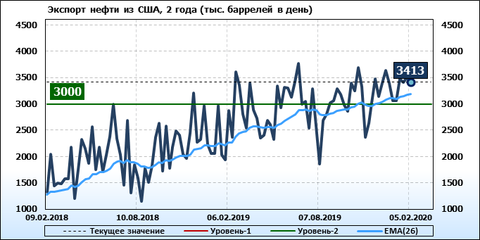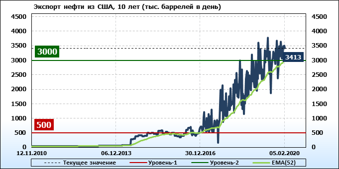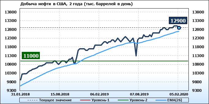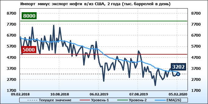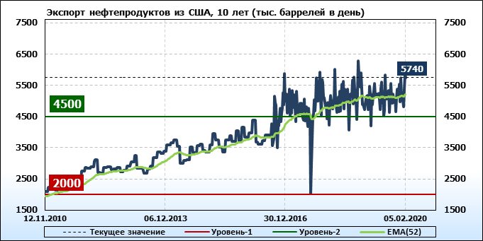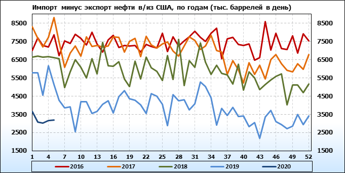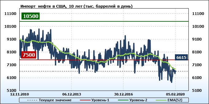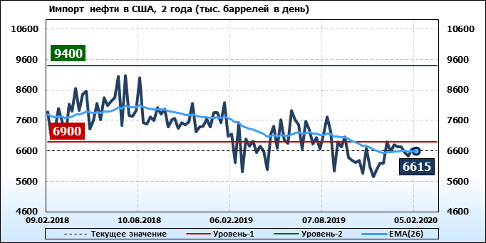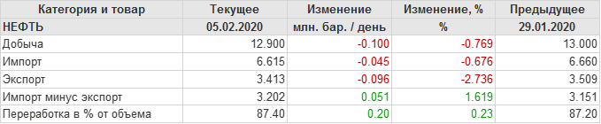 EIA. Добыча, импорт, экспорт нефти в США на 05 февраля 2020