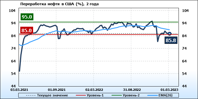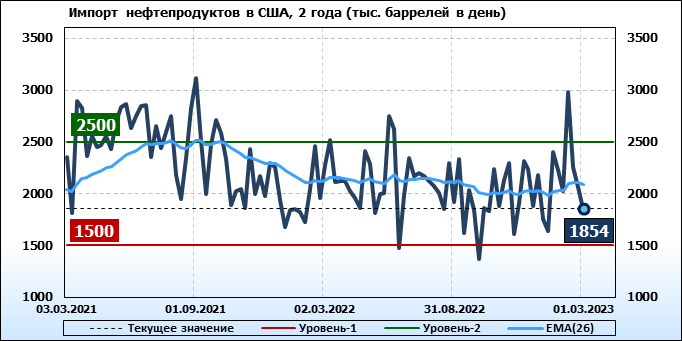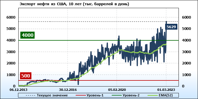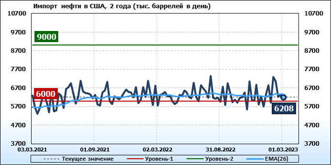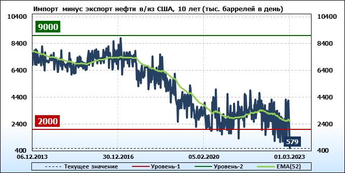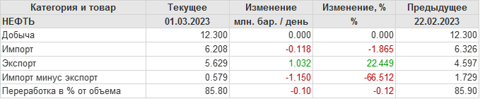 EIA. Добыча, импорт, экспорт нефти в США на 1 марта 2023