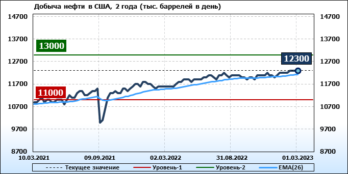 По данным ведомства, уровень добычи нефти США сохраняется на протяжении уже четырех недель. При этом в январе уровень добычи составил 12,37 млн баррелей в сутки. За прошлый год США в среднем добывали 11 млн баррелей в сутки.