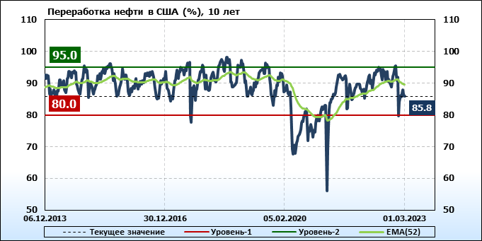 EIA. Коммерческие запасы нефти в США на 1 марта 2023