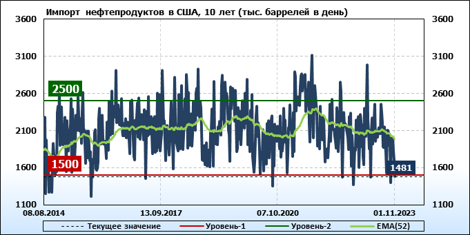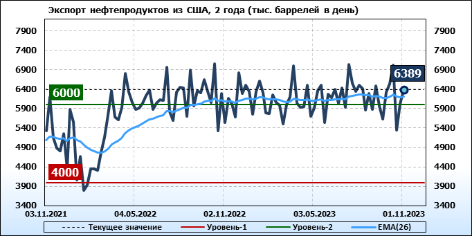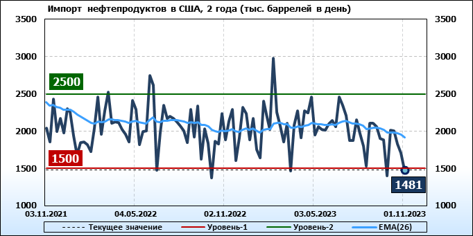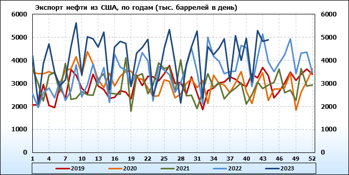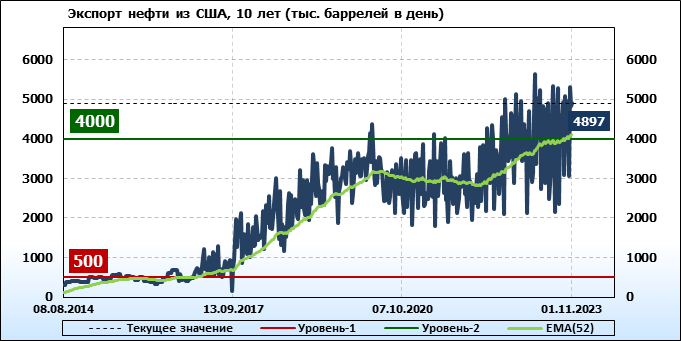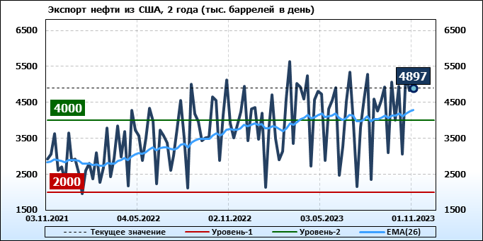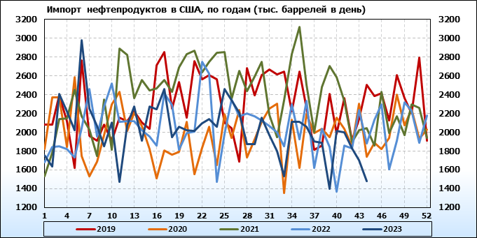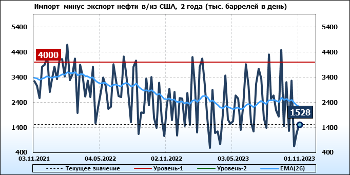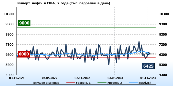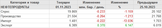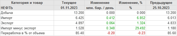 EIA. Добыча, импорт, экспорт нефти в США на 1 ноября 2023