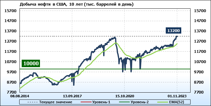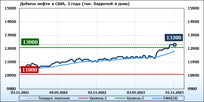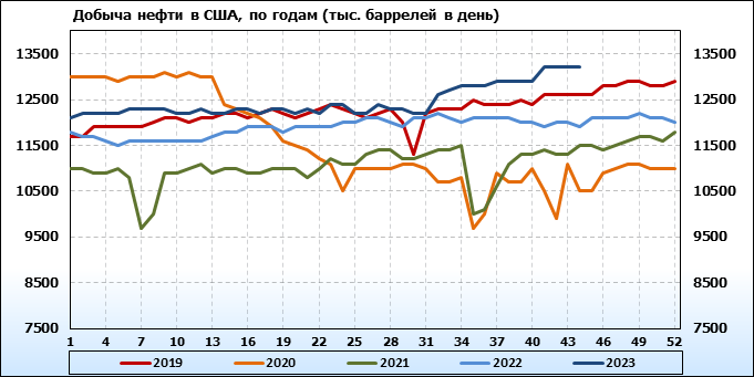 Точные данные о добыче управление сообщает в ежемесячном отчете с разницей в два месяца. По окончательным данным, добыча нефти в США в июле составила 12,99 миллиона баррелей в сутки. По предварительным данным, в августе показатель поднялся до 13,19 миллиона баррелей в день, в сентябре — до 13,23 миллиона. А за весь прошлый год добыча в среднем оценивается в 11,91 миллиона баррелей в сутки.