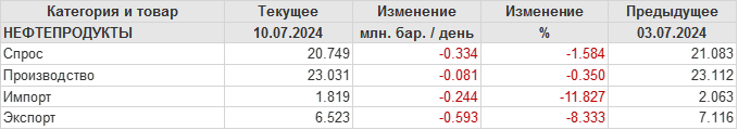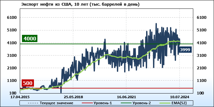 EIA. Добыча, импорт, экспорт нефти в США на 10 июля 2024