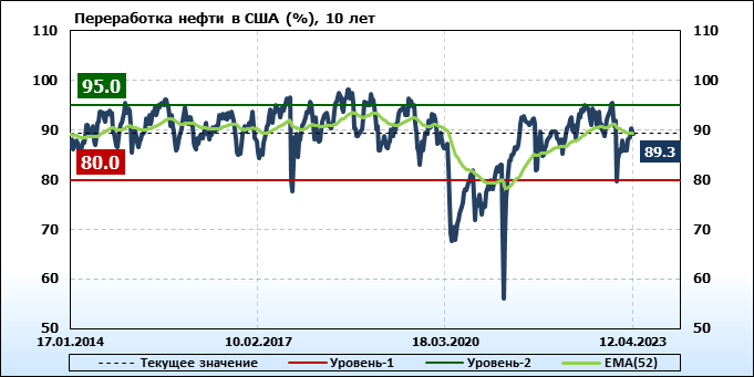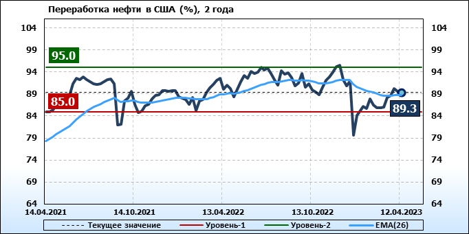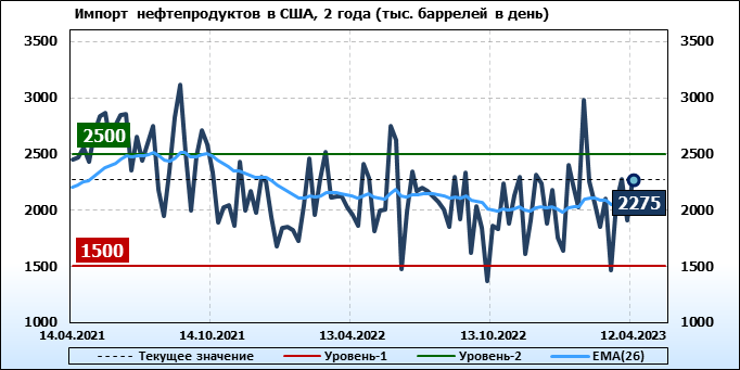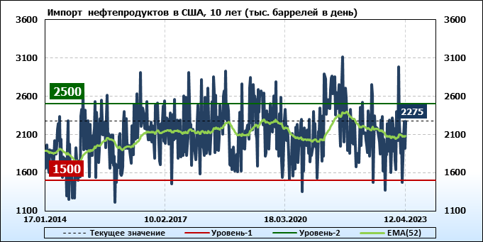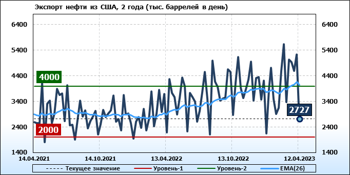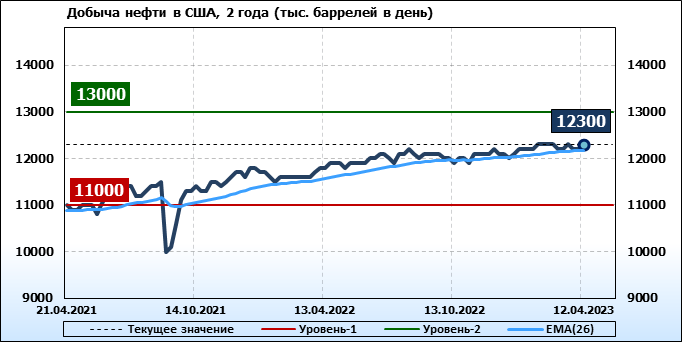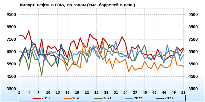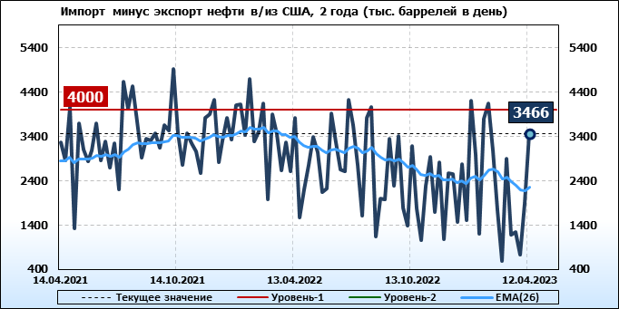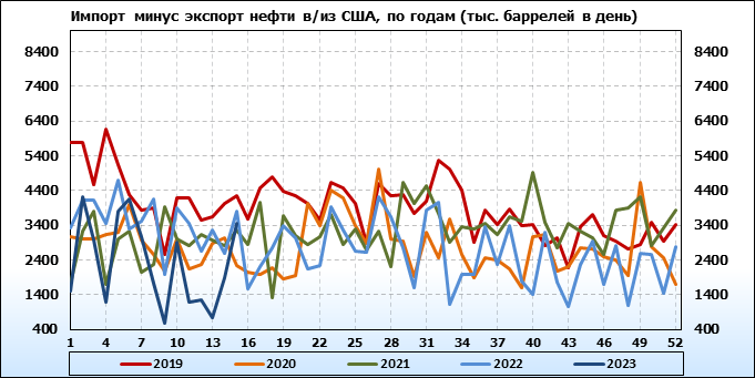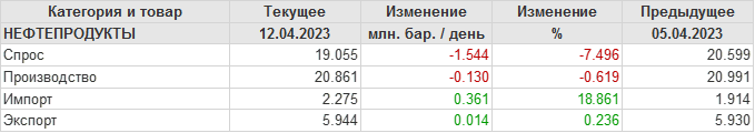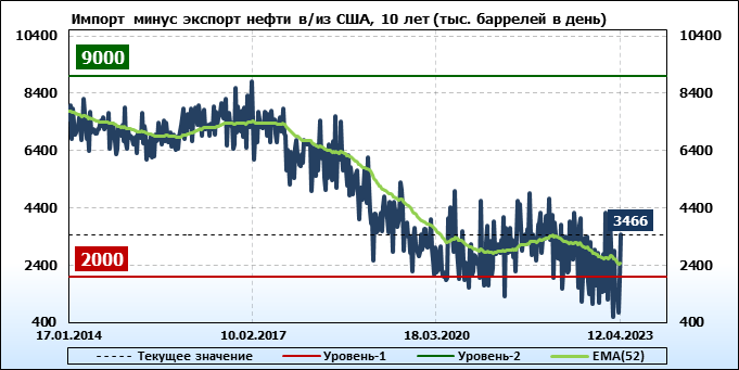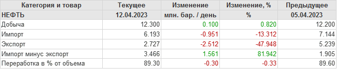 EIA. Добыча, импорт, экспорт нефти в США на 12 апреля 2023