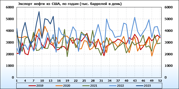 Прогнозный показатель на 660 тыс. б/с превышает результат 2022 года. Кроме того, он на 240 тыс. б/с выше последнего среднегодового рекорда добычи сырой нефти в США, установленного в 2019 году — 12,3 млн б/с.
