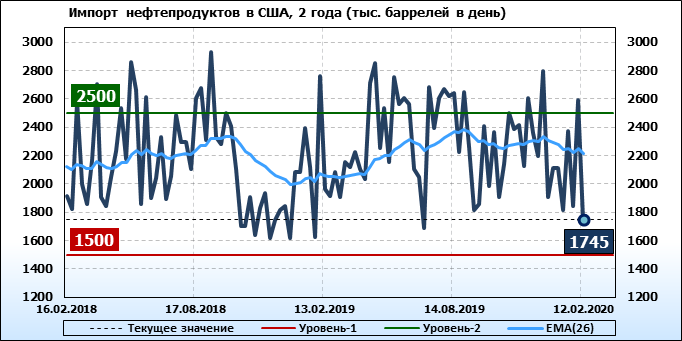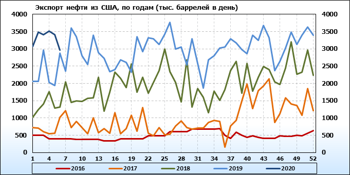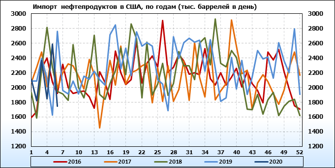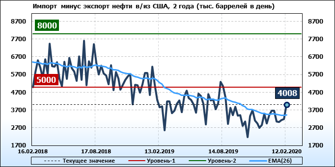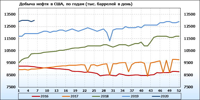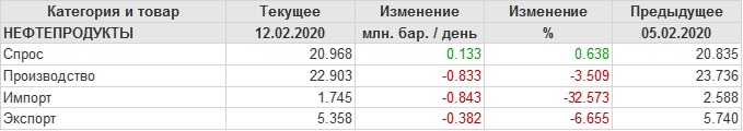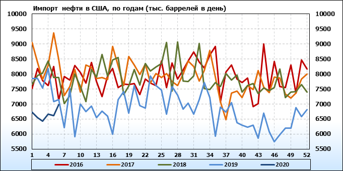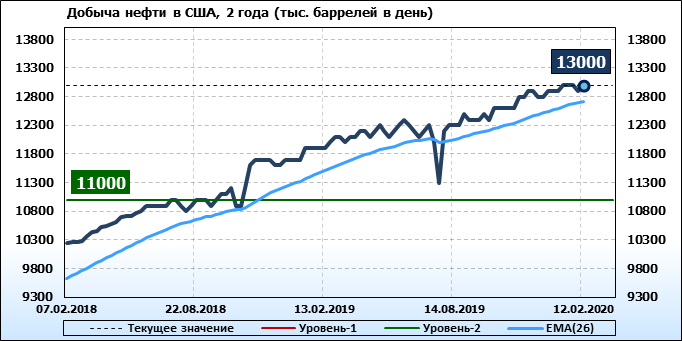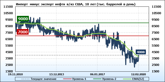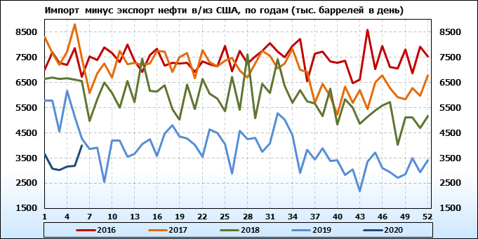 EIA. Добыча, импорт, экспорт нефти в США на 12 февраля 2020