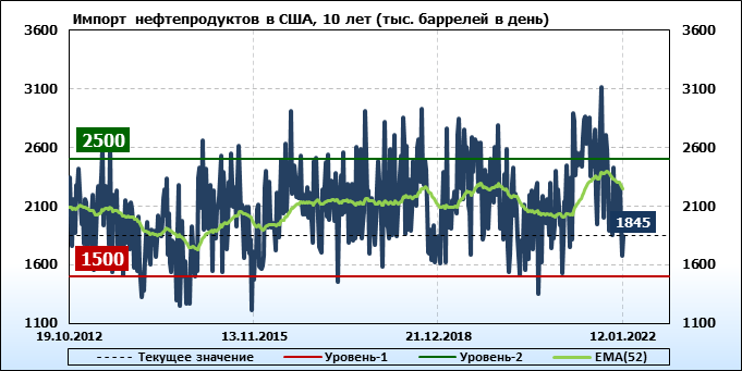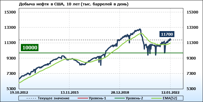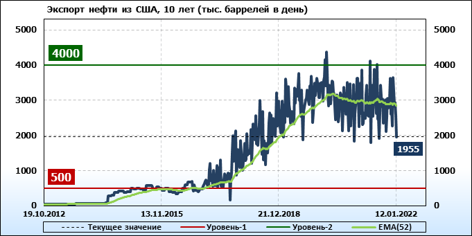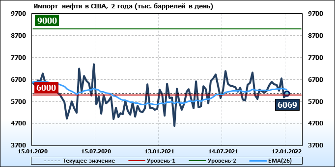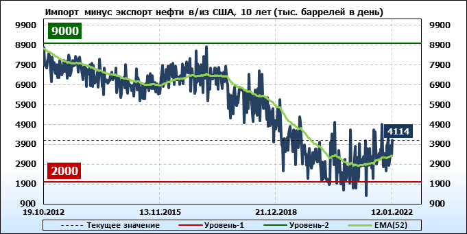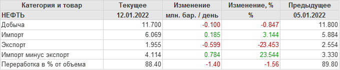 EIA. Добыча, импорт, экспорт нефти в США на 12 января 2022