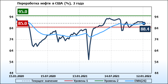 EIA. Коммерческие запасы нефти в США на 12 января 2022