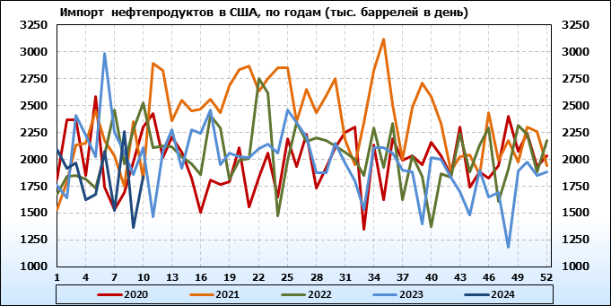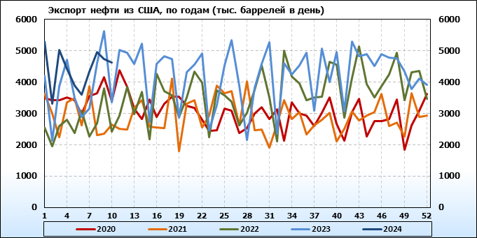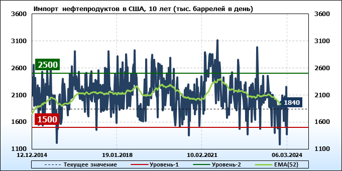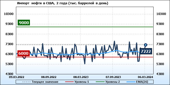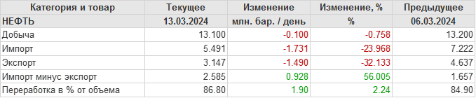EIA. Добыча, импорт, экспорт нефти в США на 13 марта 2024
