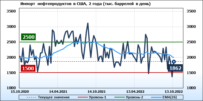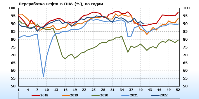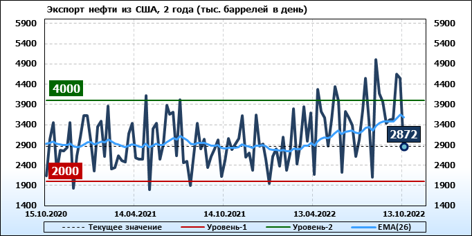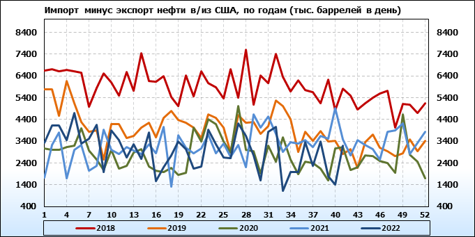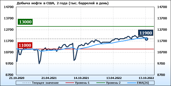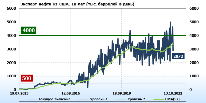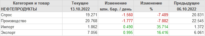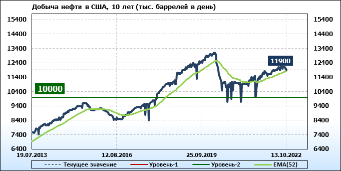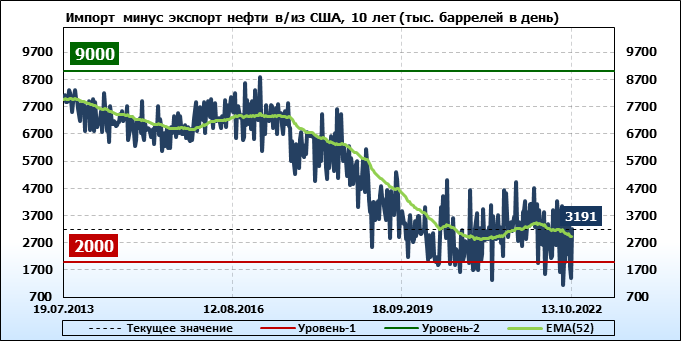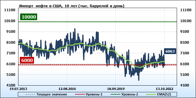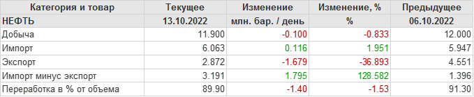 EIA. Добыча, импорт, экспорт нефти в США на 13 октября 2022