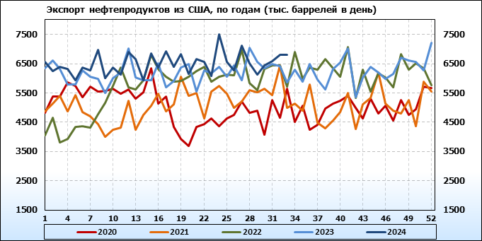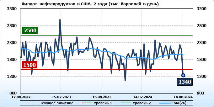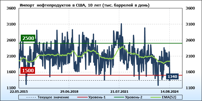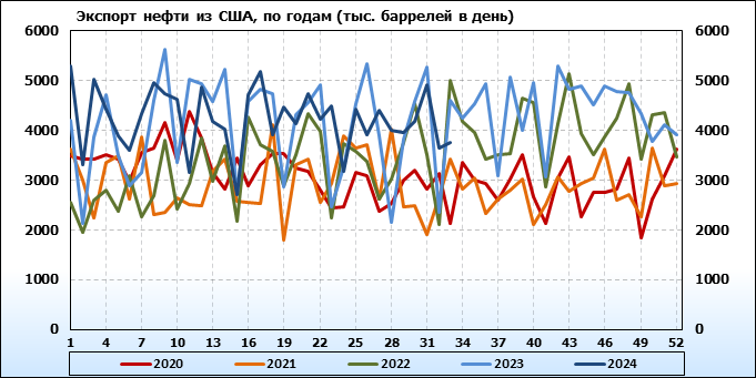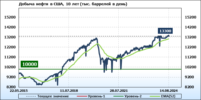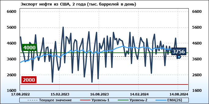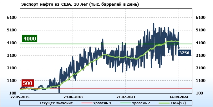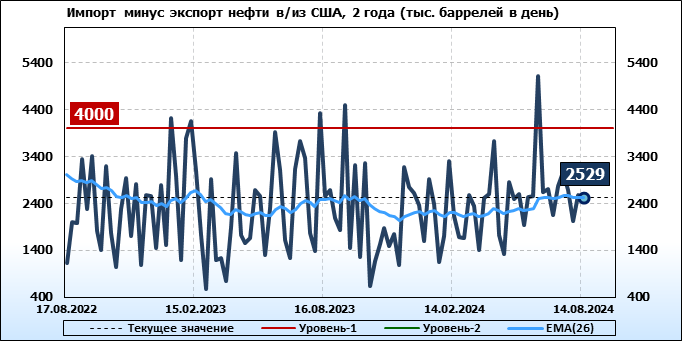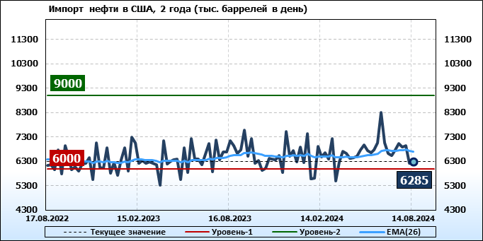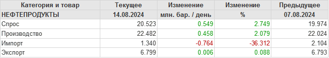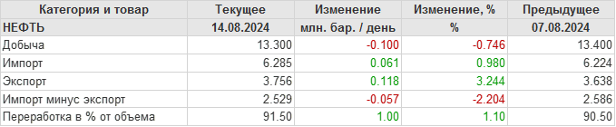 EIA. Добыча, импорт, экспорт нефти в США на 14 августа 2024