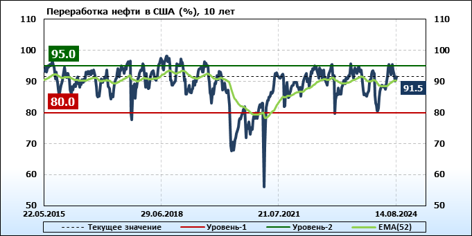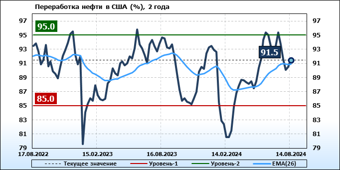 EIA. Коммерческие запасы нефти в США на 14 августа 2024