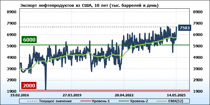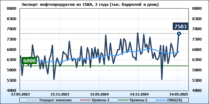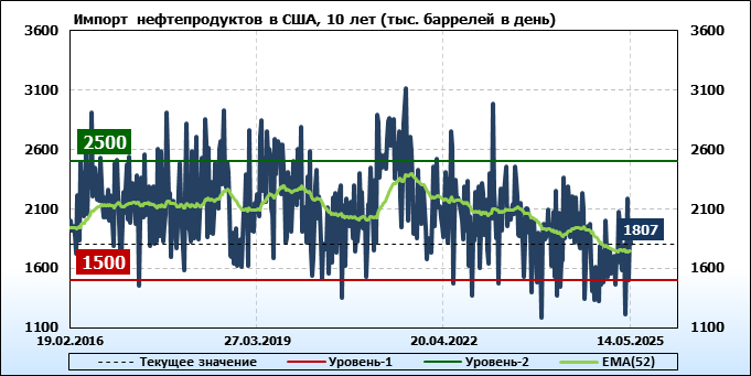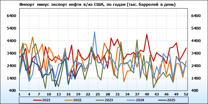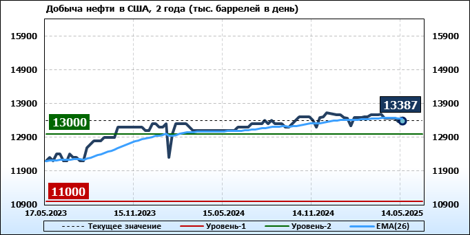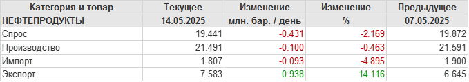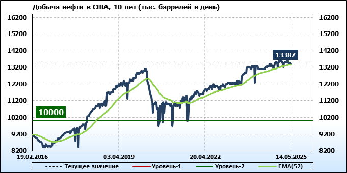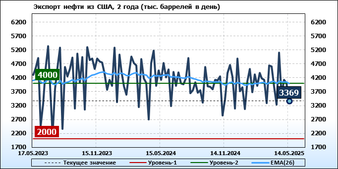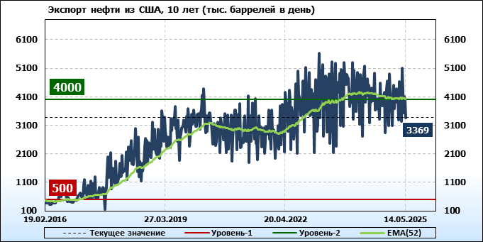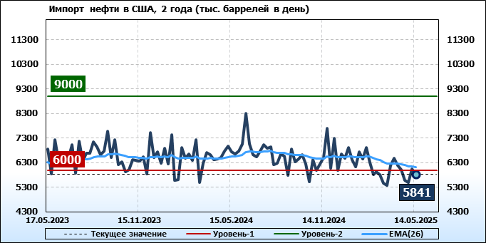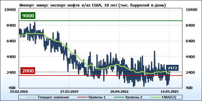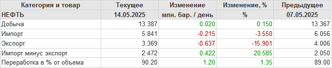 EIA. Добыча, импорт, экспорт нефти в США на 14 мая 2025