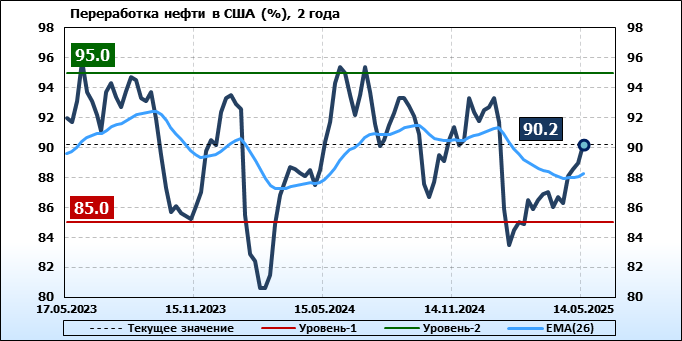 EIA. Коммерческие запасы нефти в США на 14 мая 2025