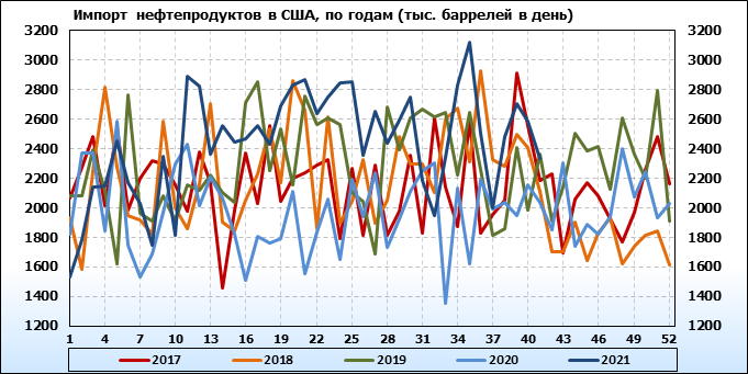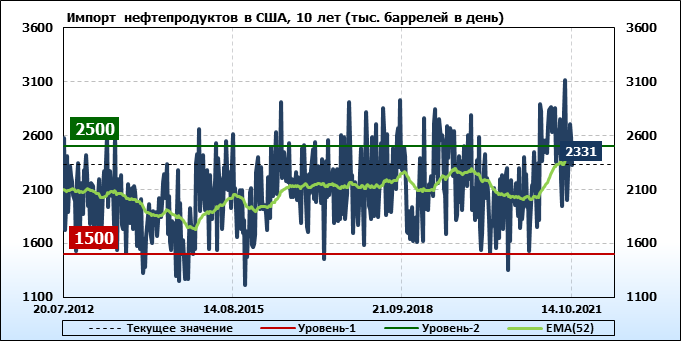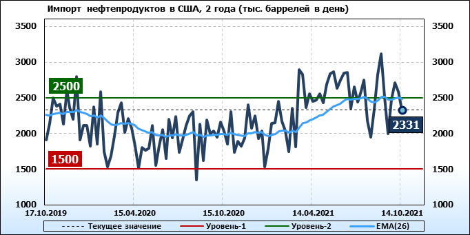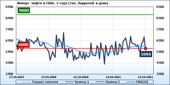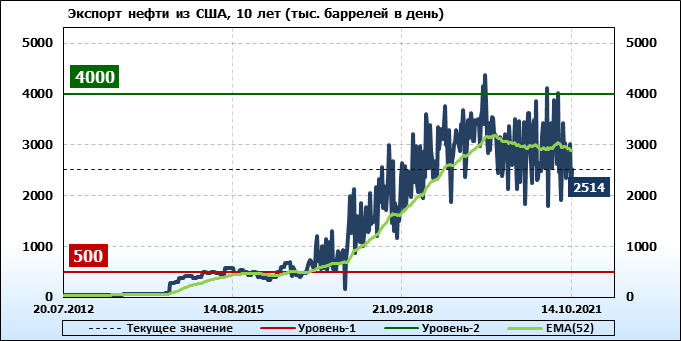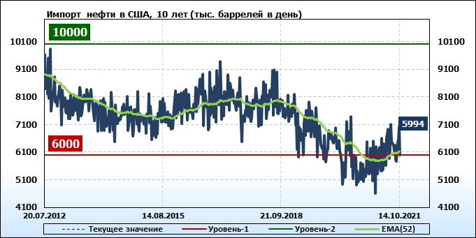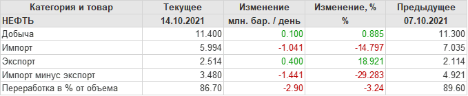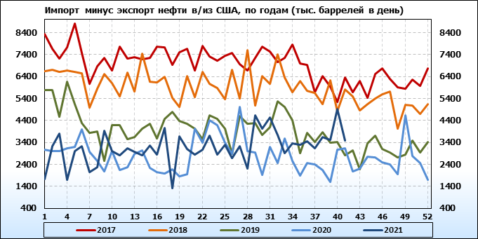 EIA. Добыча, импорт, экспорт нефти в США на 14 октября 2021