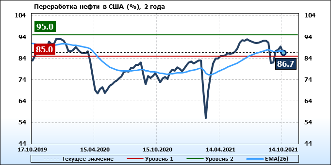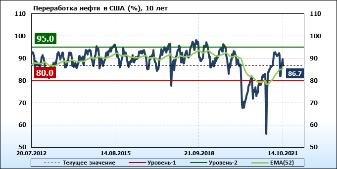 EIA. Коммерческие запасы нефти в США на 14 октября 2021