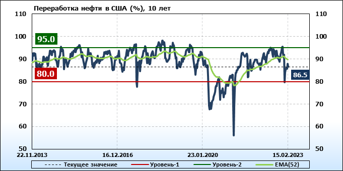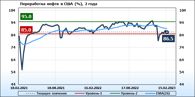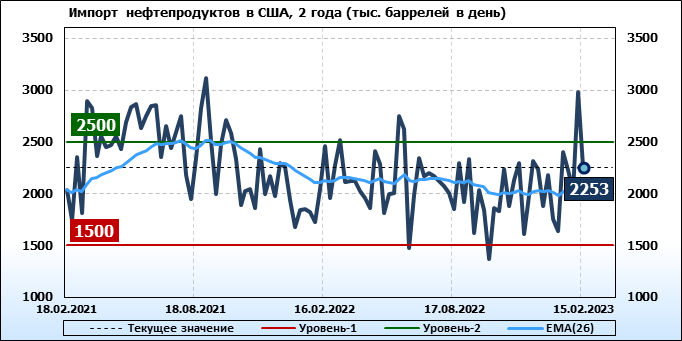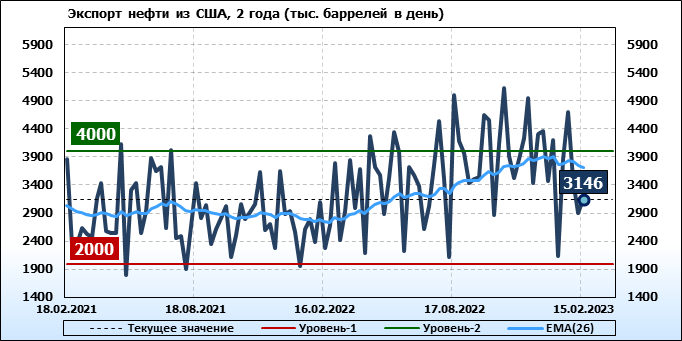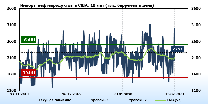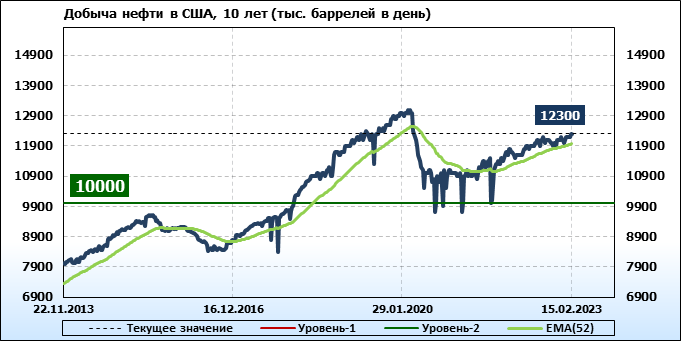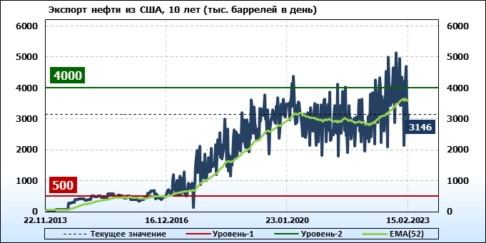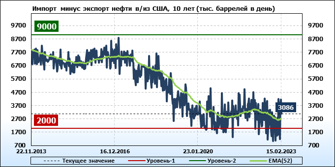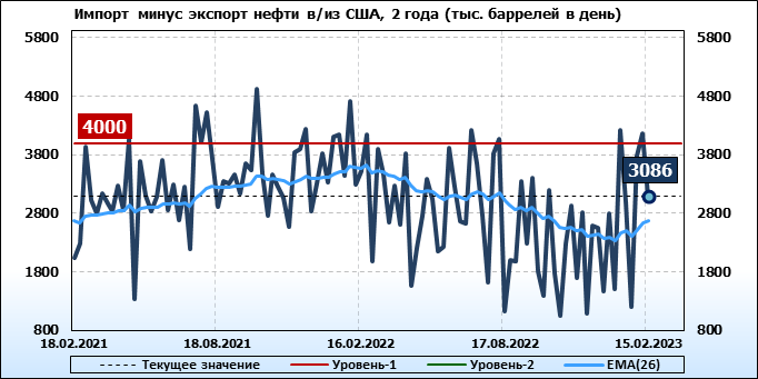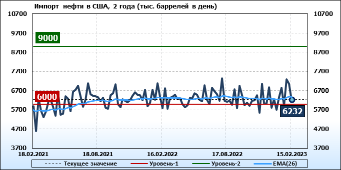 EIA. Добыча, импорт, экспорт нефти в США на 15 февраля 2023