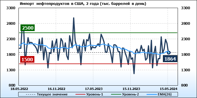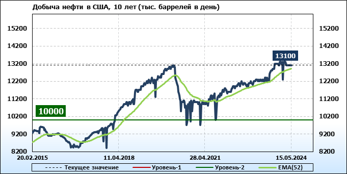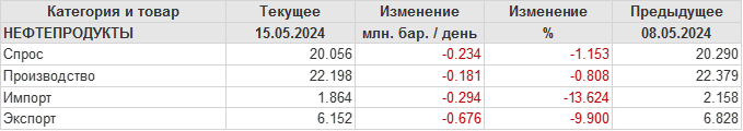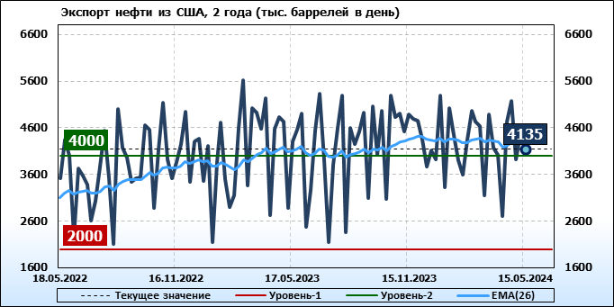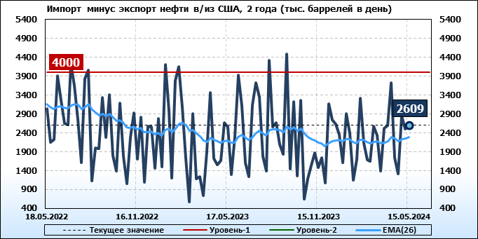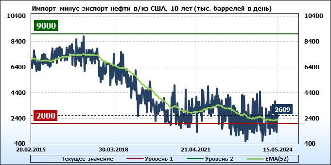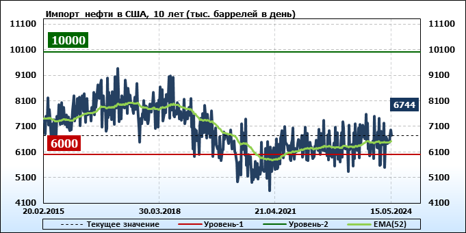 EIA. Добыча, импорт, экспорт нефти в США на 15 мая 2024