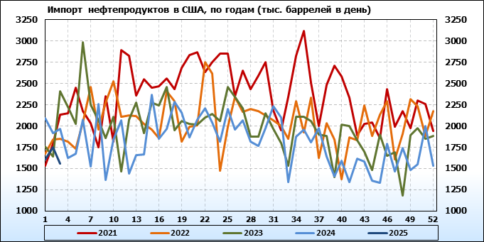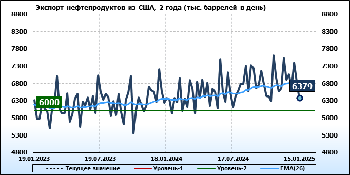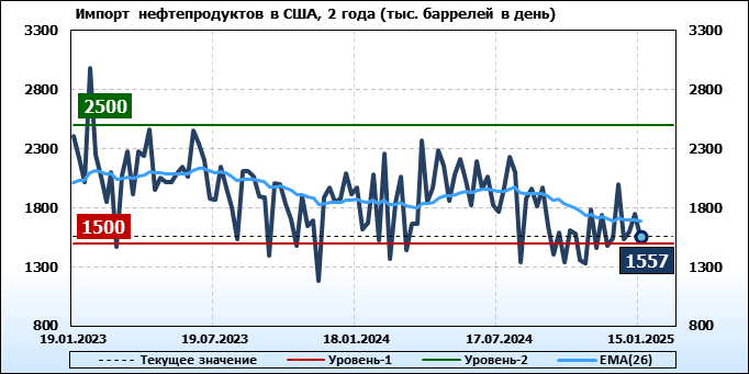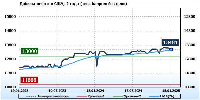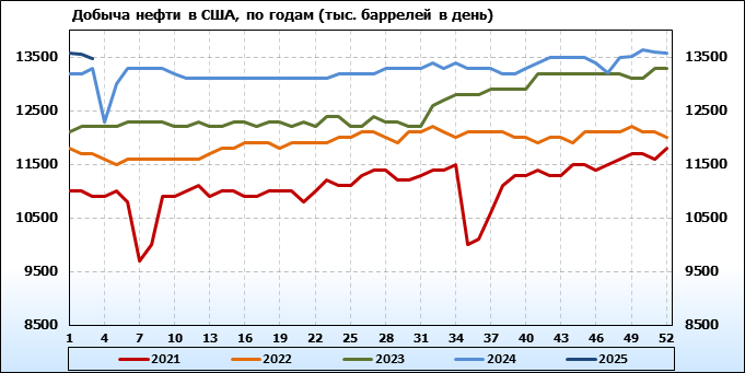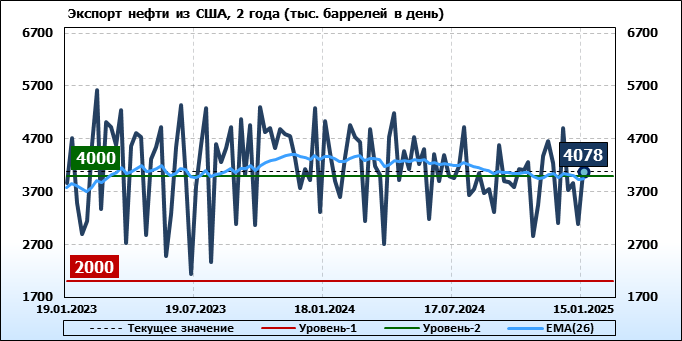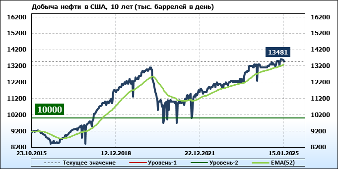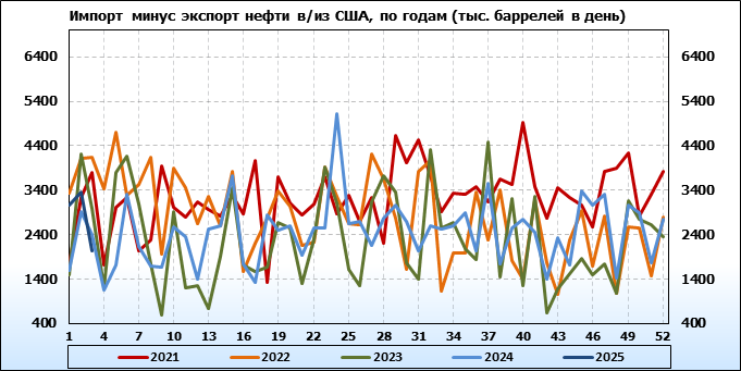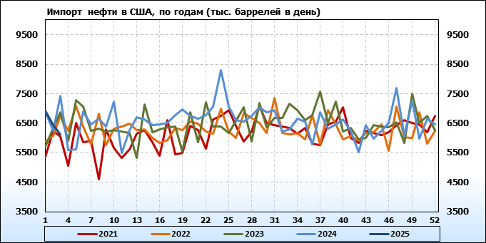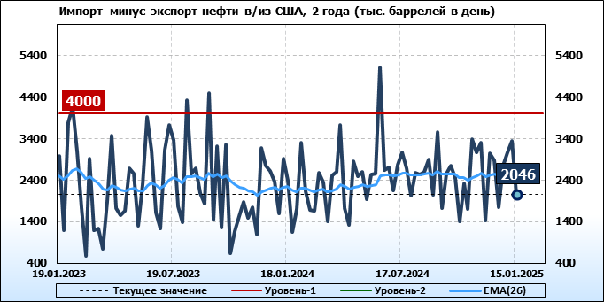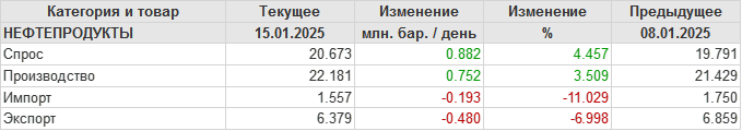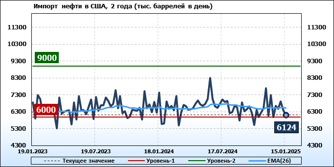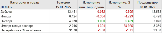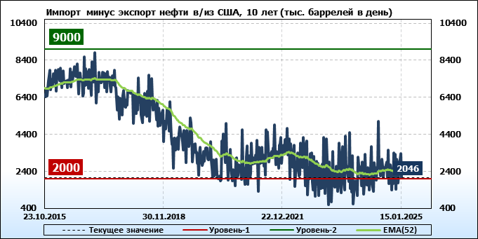 EIA. Добыча, импорт, экспорт нефти в США на 15 января 2025