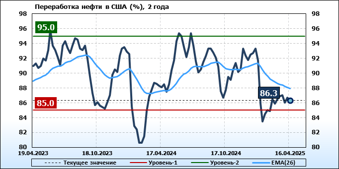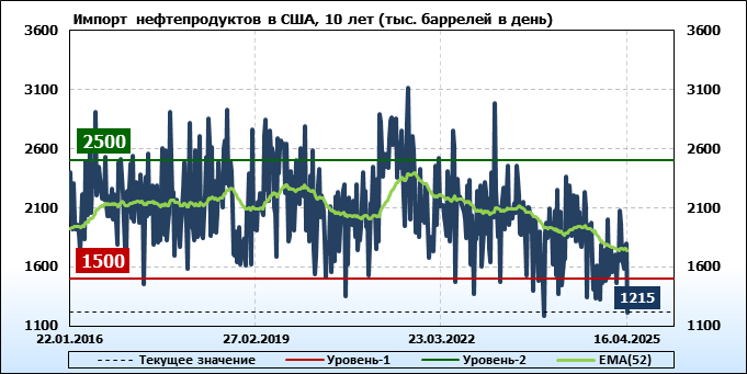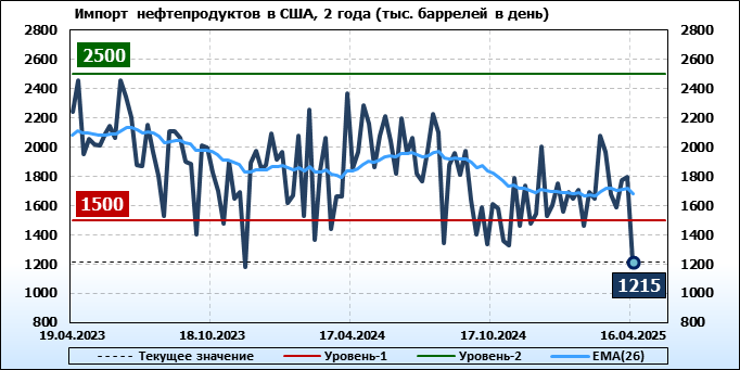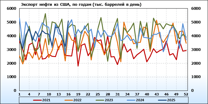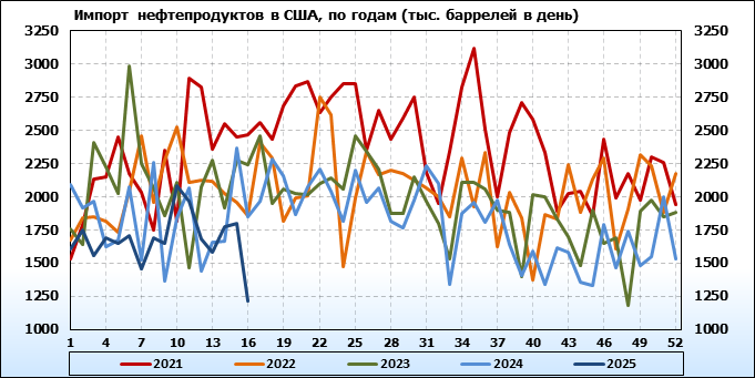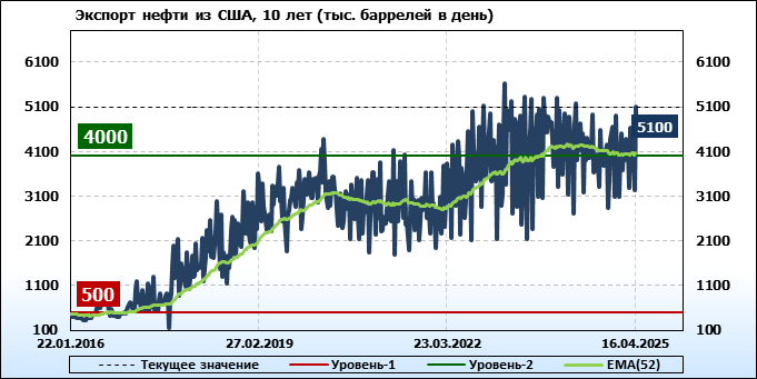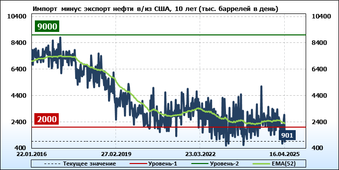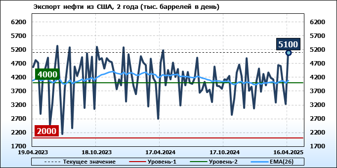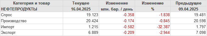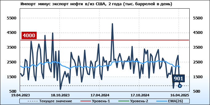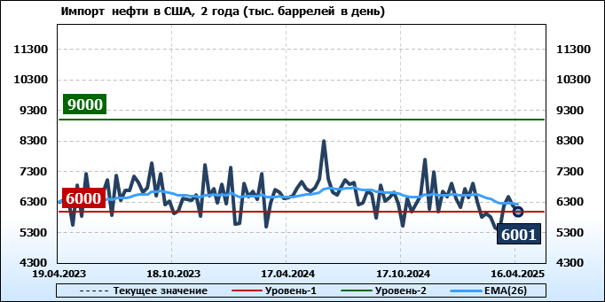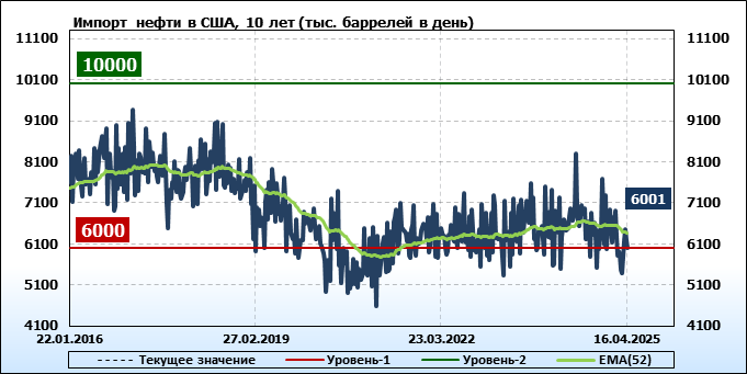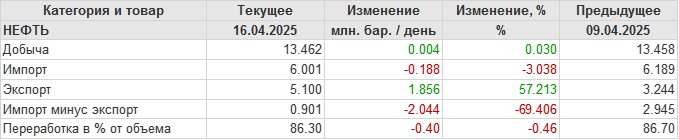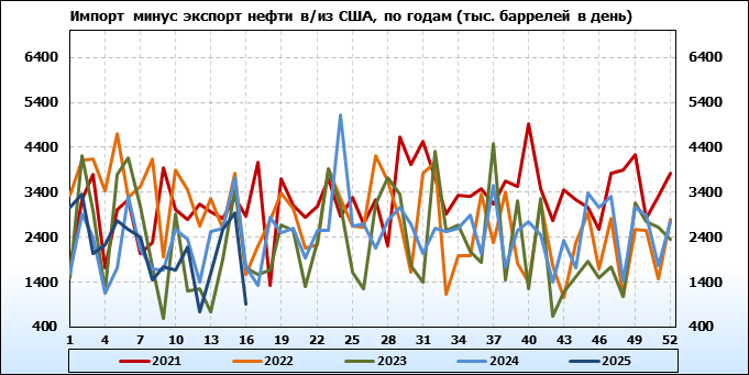 EIA. Добыча, импорт, экспорт нефти в США на 16 апреля 2025