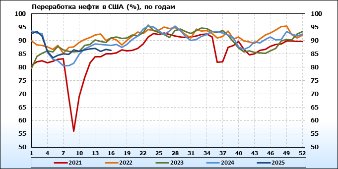 EIA. Коммерческие запасы нефти в США на 16 апреля 2025